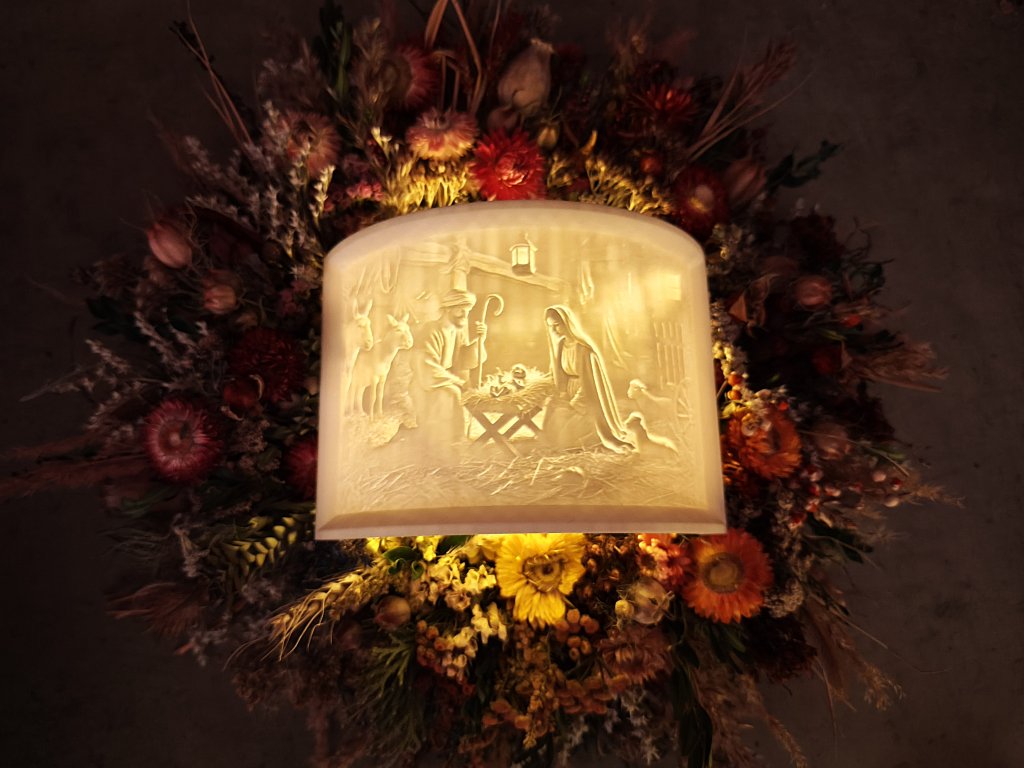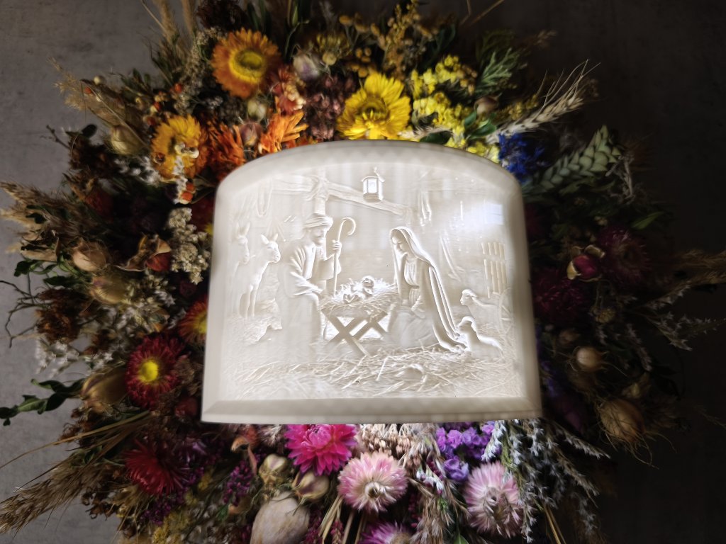 Jemně zpracovaný litofán s motivem Svaté rodiny přináší do domova klid, teplo a pocit sváteční atmosféry. Reliéfní obrázek je vytištěný z kvalitního bílého materiálu a při prosvícení krásně ožívá – tváře Marie, Josefa a malého Ježíška se zjeví v jemném světelném kontrastu.